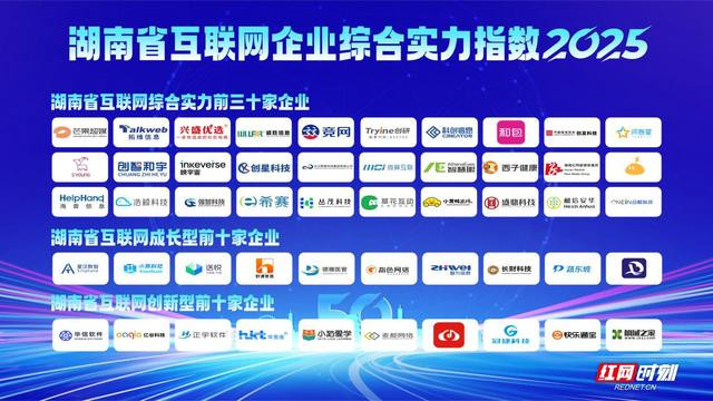 湖南红网新媒体集团等企业进入2025年湖南省互联网综合实力前三十家企业名单;湖南星汉数智科技有限公司等企业进入2025年湖南省互联网成长型前十家企业名单;湖南华信软件股份有限公司等企业进入2025年湖南省互联网创新型前十家企业名单。